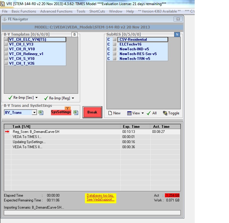 -This happens (for example) at the step “VEDA to TIMES II …” at the sizes of ACT: 1.205GB, WORK: 0.513GB when we synchronize this one single Scenario file
